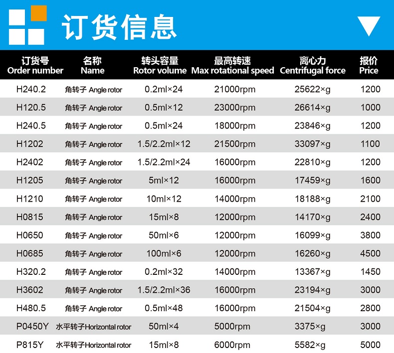 H3602 | 角轉(zhuǎn)子 | 16000rpm | 23194g |