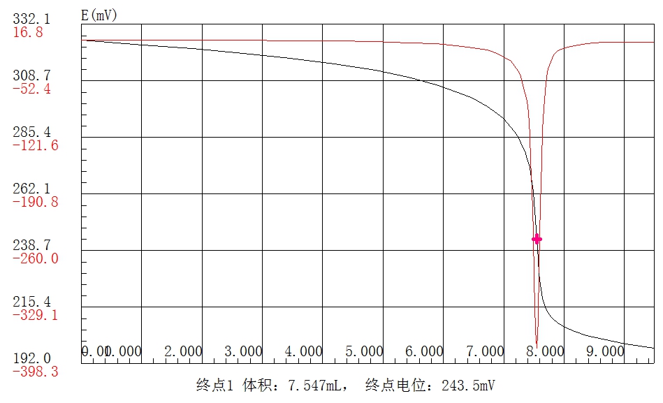 測試過程:稱取10g試樣,精密稱定,置于滴定杯中,加50mL水溶解后,加2mL磷酸溶液、5mL碘化鉀溶液。充分混勻,用硫代硫酸鈉標(biāo)準(zhǔn)滴定溶液(0.002mol/L)在自動滴定儀上滴定至終點(diǎn)。