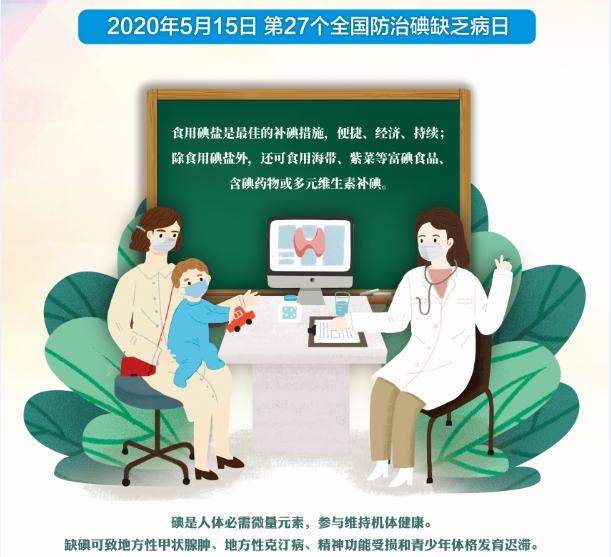 2020年5月15日是我國第27個“防治碘缺乏病日” ,主題是“眾志成城戰(zhàn)疫情,科學(xué)補(bǔ)碘保健康”。旨在通過普及碘缺乏病防治相關(guān)知識,使公眾在防控新冠肺炎疫情的同時做好科學(xué)補(bǔ)碘工作,進(jìn)一步增強(qiáng)全社會對食鹽加碘防治碘缺乏病工作的認(rèn)同和支持。