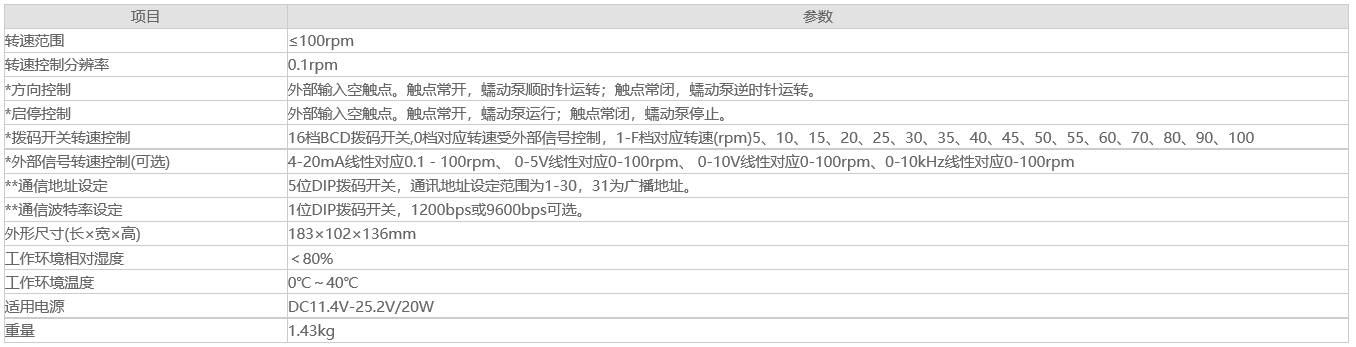 T100系列產品是主要針對配套客戶設計研發(fā)的蠕動泵驅動器,最高轉速為100rpm,轉速可調節(jié),適配多種泵頭,最大能提供380mL/min的參考流量,可采用底板和面板兩種安裝方式,直流11.4-25.2V供電,體積小,結構緊湊,適合配套使用。