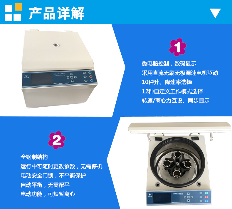 ■ 自動平衡,無需配平,點動功能,可短暫離心
