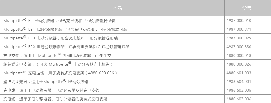 Multipette? E3/E3x 電動(dòng)分液器結(jié)合分液管,提供從 1 μL——50 mL 的分液范圍,特別適合于高粘度、易揮發(fā)、易起泡、高密度及危險(xiǎn)性等問題溶液的精準(zhǔn)移取及分裝。中文彩色界面、RFID 數(shù)據(jù)讀寫、睡眠模式、8 檔速度調(diào)節(jié)等功能提升您的使用體驗(yàn)。
